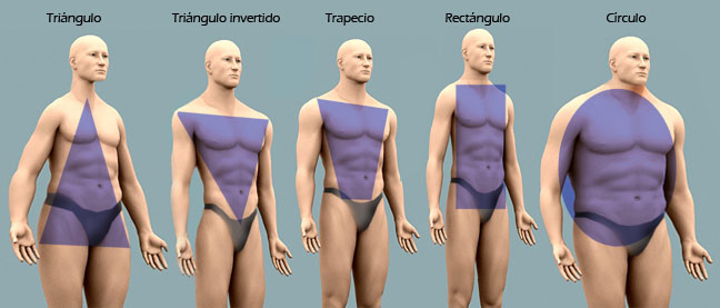 En el caso de los hombres existen 4 formas de cuerpo: A, V, H y O.
